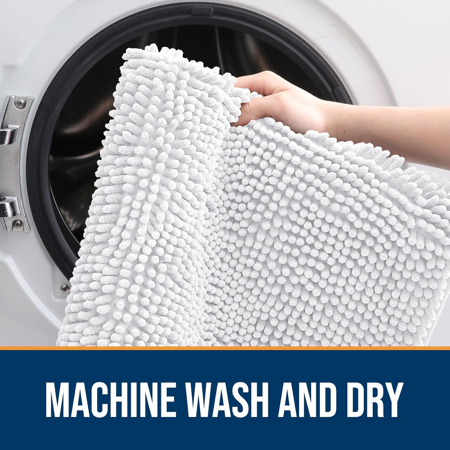 OLANLY Dog Door Mat for Muddy Paws 47x20, Absorbs Moisture and Dirt, Absorbent Non-Slip Washable Doormat, Quick Dry Chenille Mud Mat for Dogs, Entry Indoor Entryway Carpet for Inside Floor, White