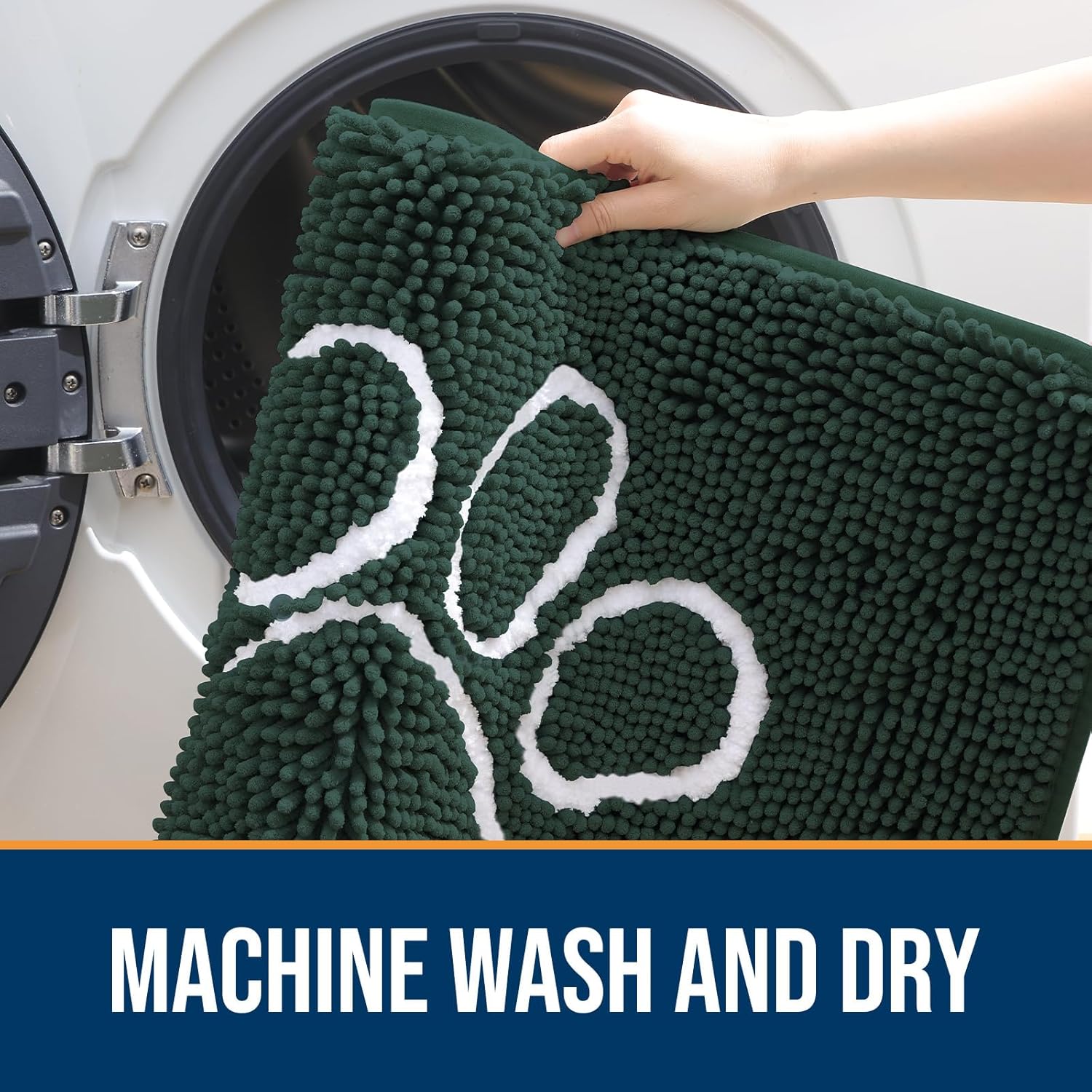 OLANLY Door Mat for Muddy Dog Paws 48x30, Absorbent Chenille Mud Doormat with Paw Print Design, Non-Slip Washable Doormat for Indoor Entryway, Quick-Dry Pet Bed Mats for Dirty Dogs, Blackish Green