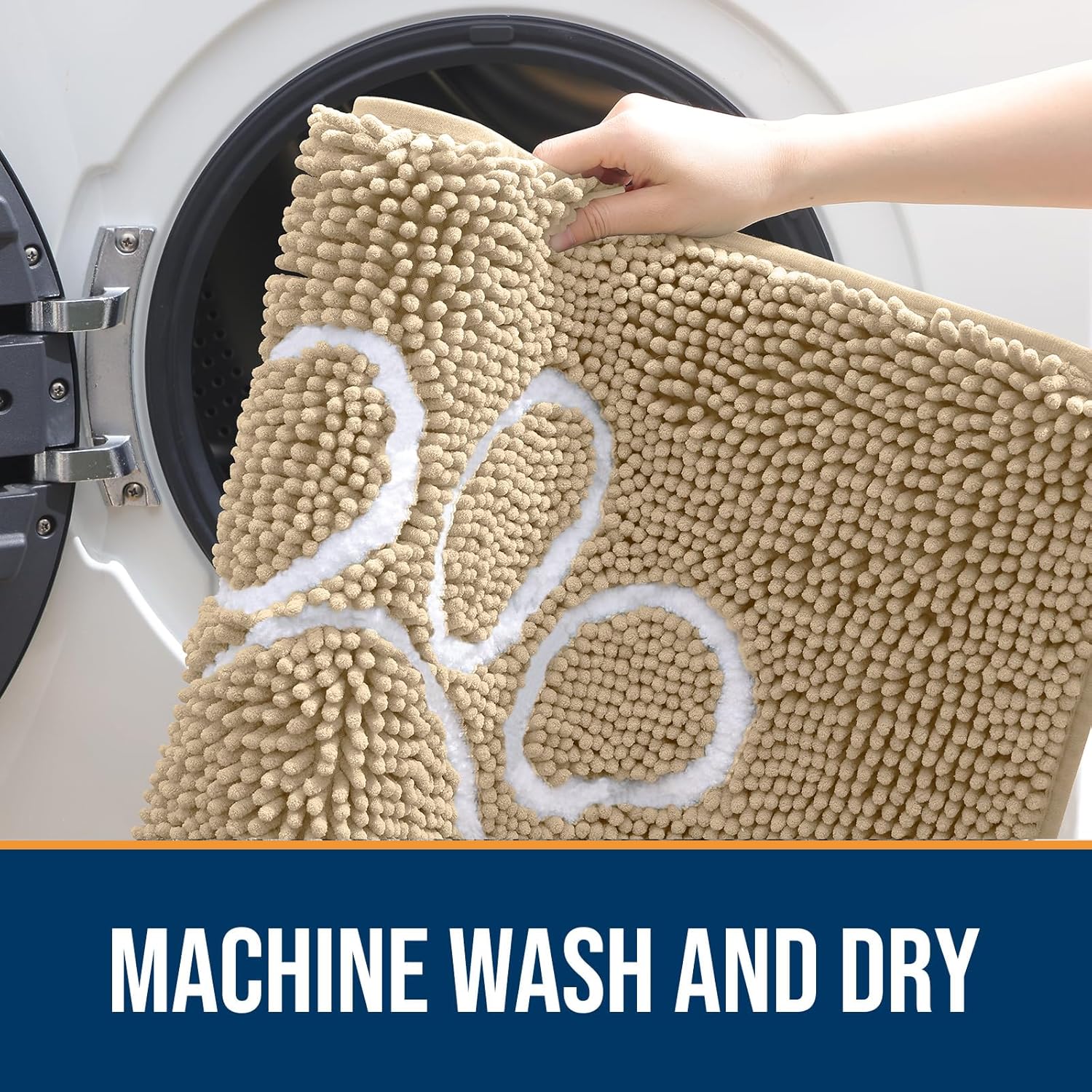 OLANLY Door Mat for Muddy Dog Paws 48x30, Ultra Absorbent Chenille Mud Doormat with Paw Print Design, Non-Slip Washable Doormat for Indoor Entryway, Quick-Dry Pet Bed Mats for Dirty Dogs, Beige
