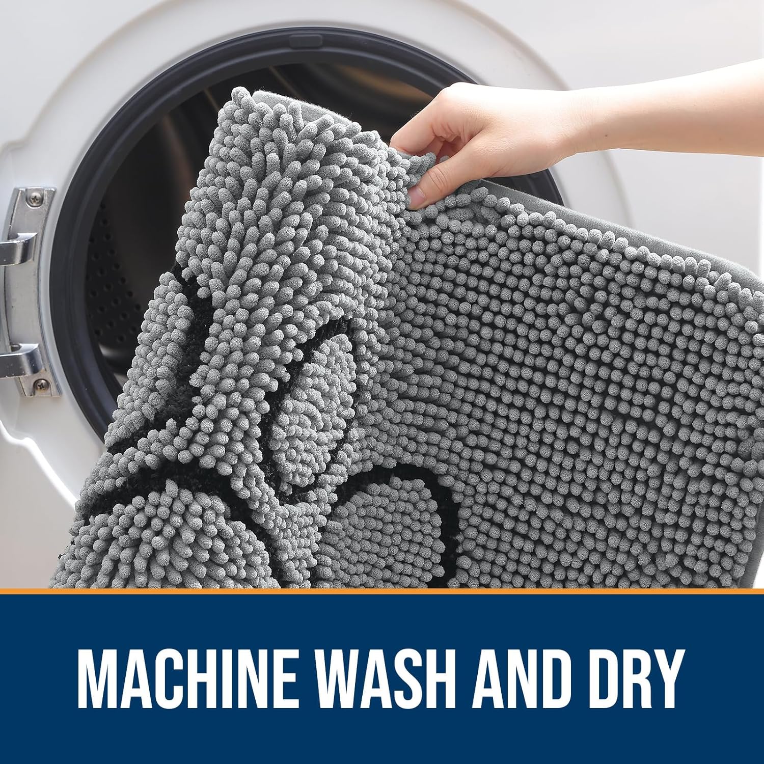 OLANLY Door Mat for Muddy Dog Paws 47x32, Ultra Absorbent Chenille Mud Doormat with Paw Print Design, Non-Slip Washable Doormat for Indoor Entryway, Quick-Dry Pet Bed Mats for Dirty Dogs, Grey