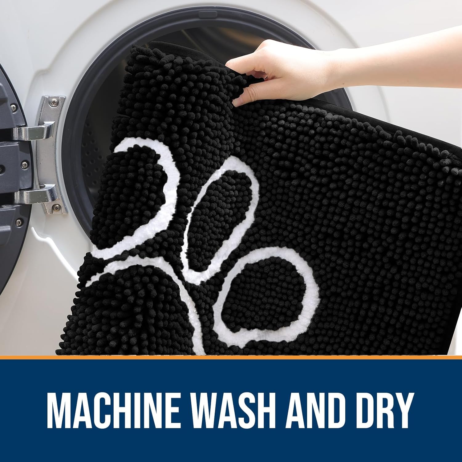 OLANLY Door Mat for Muddy Dog Paws 47x32, Ultra Absorbent Chenille Mud Doormat with Paw Print Design, Non-Slip Washable Doormat for Indoor Entryway, Quick-Dry Pet Bed Mats for Dirty Dogs, Black