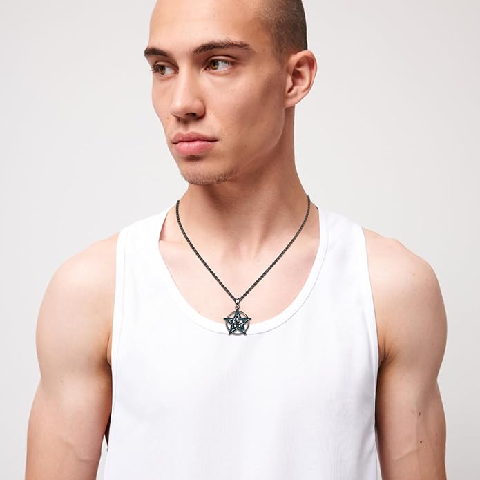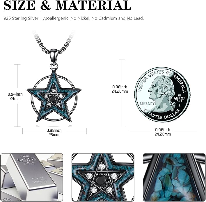 - Black Pentagram Necklace Material: Our wiccan jewelry is crafted from 925 sterling silver. They are hypoallergenic and free of lead and nickel, ensuring a comfortable wearing experience without worrying about skin irritation. To give the witch jewelry unique look, a black gold process and turquoise are used