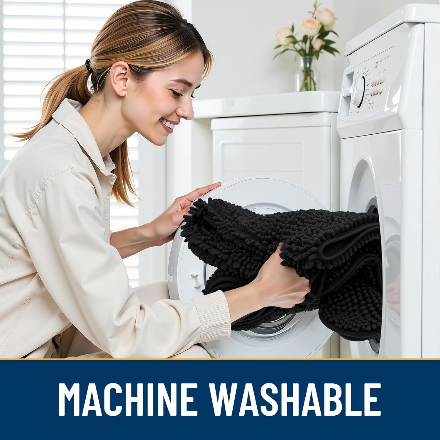 Smiry Dog Door Mat for Muddy Paws 70x24, Absorbs Moisture and Dirt Doormat, Non-Slip Washable Quick Dry Chenille Front Door Mat Indoor Entrance, Entryway Carpet for Inside Floor, Black
