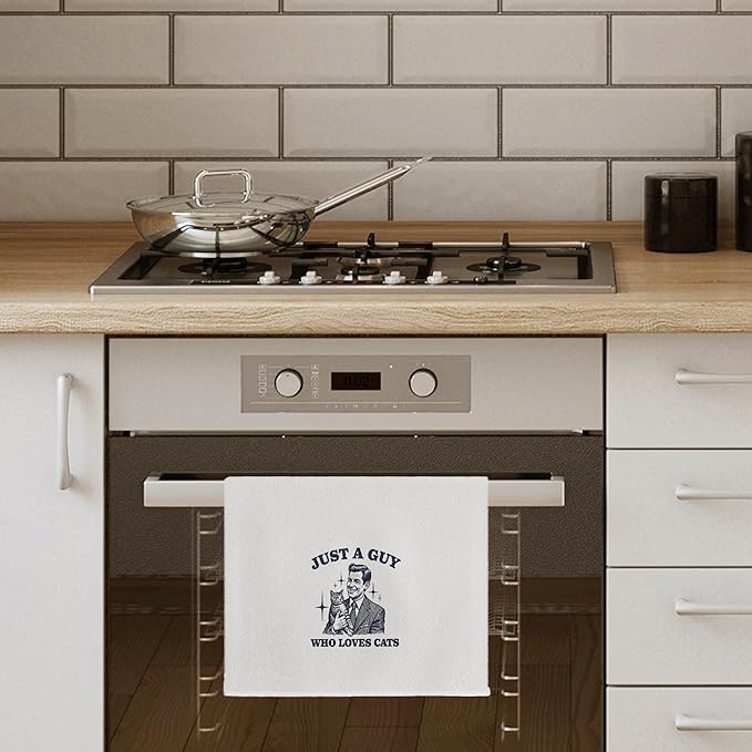 Just a Guy Who Loves Cats Kitchen Towels, Cat Lover Gifts for Men Dish Tea Towels for Kitchen Decor, Cat Dad Gifts Hand Towels for Bathroom, 16x24 Inch