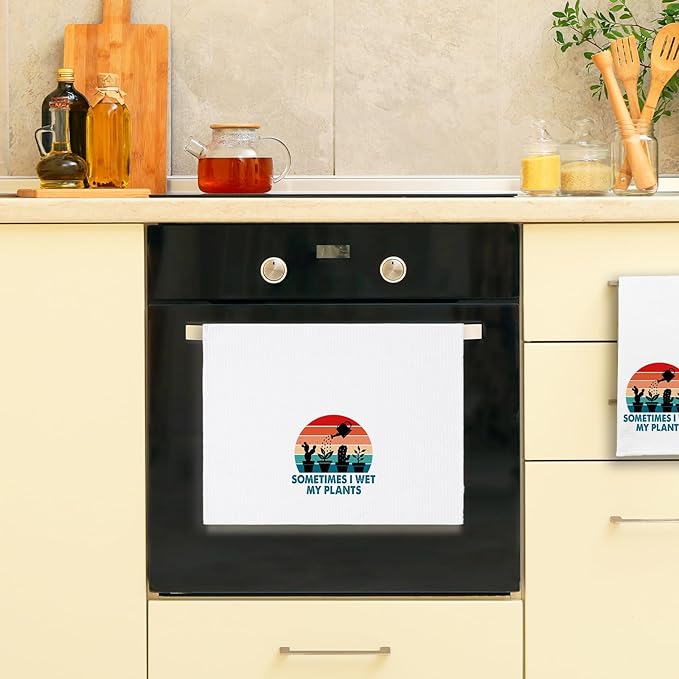 - Unique Design: Our funny kitchen towel with saying "Sometimes I Wet My Plants". The simple yet cute text patterns can bright up your kitchen and surprise your family and friends. It's a perfect kitchen gift for your favourite chef.