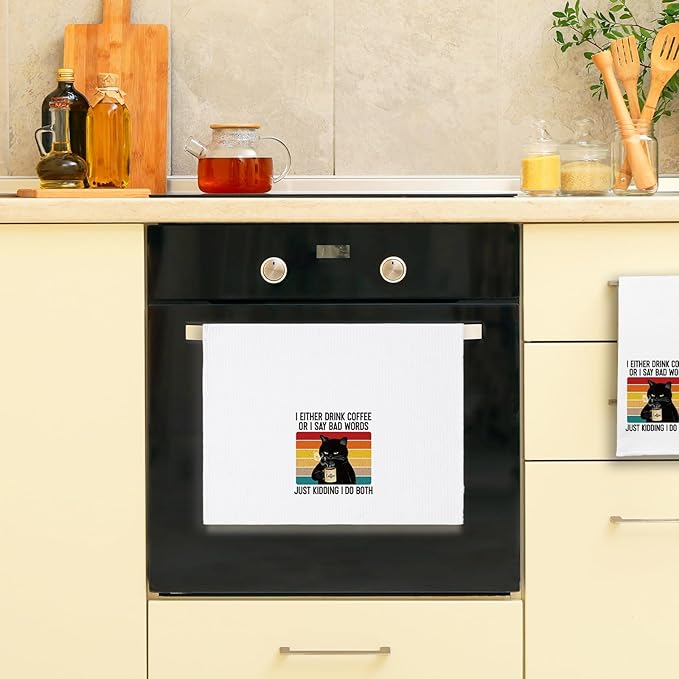 - Unique Design: Our funny kitchen towel with saying "I Either Drink Coffee or I Say Bad Words Just Kidding I Do Both". The simple yet cute text patterns can bright up your kitchen and surprise your family and friends. It's a perfect kitchen gift for your favourite chef.