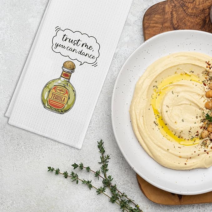 - Unique Design: Our funny kitchen towel with saying "Trust Me You Can Dance - Tequila". The simple yet cute text patterns can bright up your kitchen and surprise your family and friends. It's a perfect kitchen gift for your favourite chef.