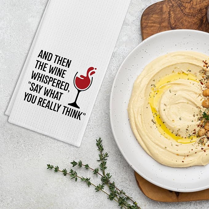 - Unique Design: Our funny kitchen towel with saying "And Then The Wine Whispered Say What You Really Think". The simple yet cute text patterns can bright up your kitchen and surprise your family and friends. It's a perfect kitchen gift for your favourite chef.