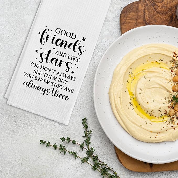 - Unique Design: Our funny kitchen towel with saying "Good Friends Are Like Stars You Don't Always See Them But You Know They Are Always There". The simple yet cute text patterns can bright up your kitchen and surprise your family and friends. It's a perfect kitchen gift for your favourite chef.