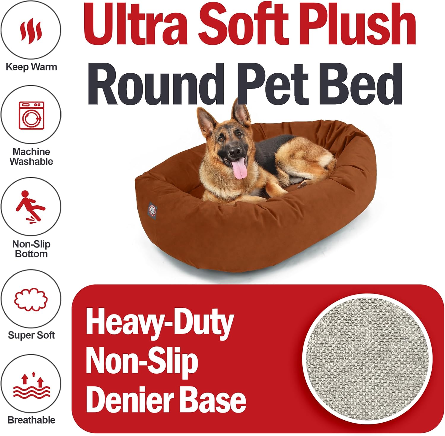 Majestic Pet 52 Inch Suede Calming Dog Bed Washable 52x35x11 (Inch) – Cozy Soft Round Donut Dog Bed with Spine Support for Dogs to Rest Their Head - Pet Bed X- Large – Rust (2025)