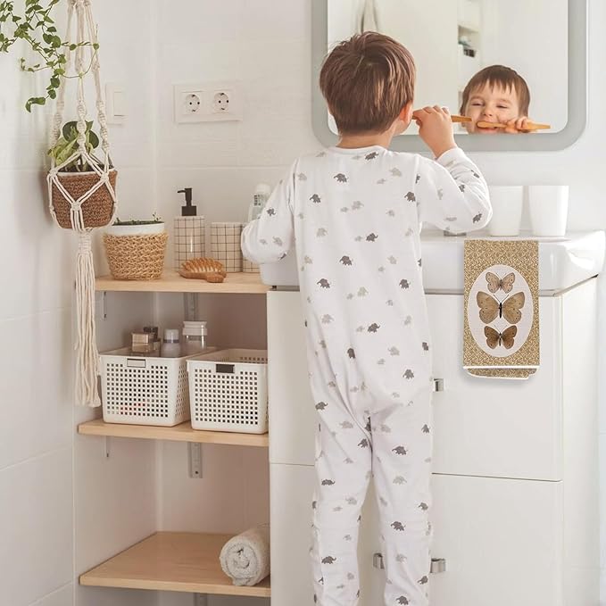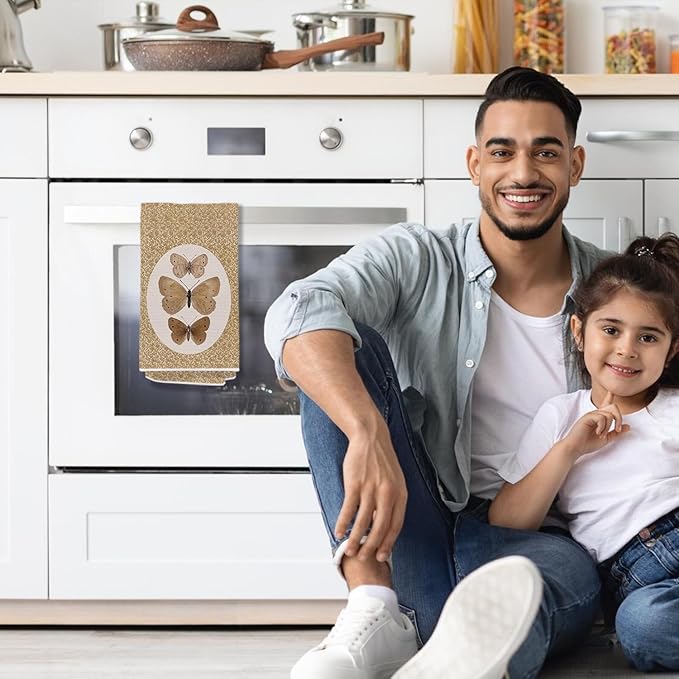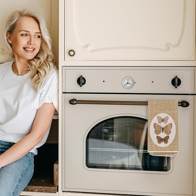 Vintage Butterfly Kitchen Towels, Cottagecore Neutral Butterfly Decorative Dish Tea Towels for Kitchen, Retro Insect Moth Hand Towels for Bathroom, 16x24 Inch