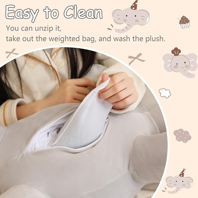 - 【Safe Material】Elephant weighted stuffed animal is made of cotton and plush materials, providing a comfortable and enjoyable experience. Soft plush PP cotton match with weighted beads on the bottom, this is real weighted elephant weighted plush.