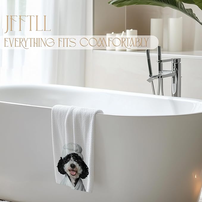 Funny Bathrobe Poodle Hand Towels for Bathroom Washroom Restroom, Poodle Bathroom Decor Hand Towels, Dog Mom Gift for Women Dog Lover, 16x24 Inch