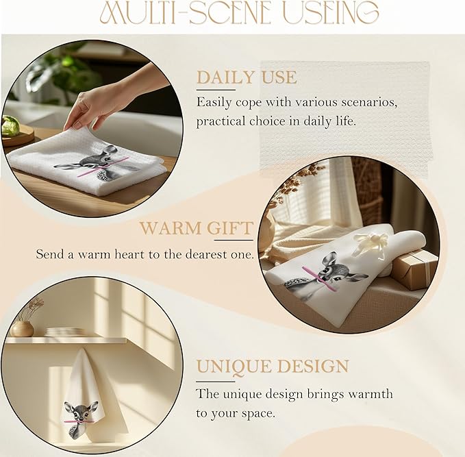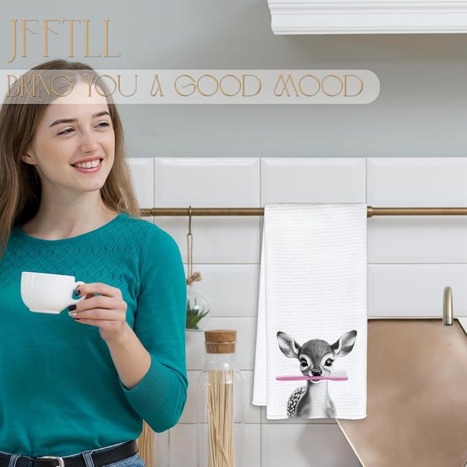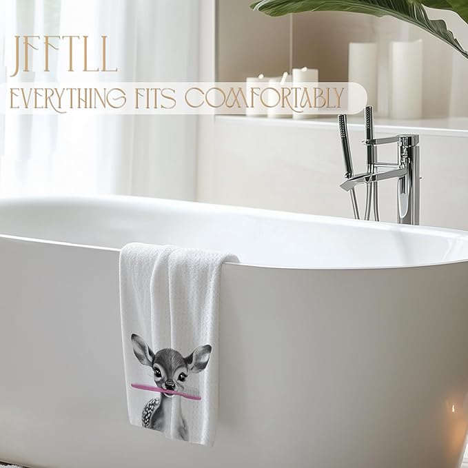 Funny Toothbrush Deer Hand Towels for Bathroom Washroom Restroom Decor, Deer Gifts for Women, Kids Hand Towels, 16x24 Inch