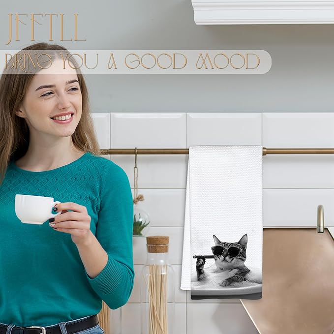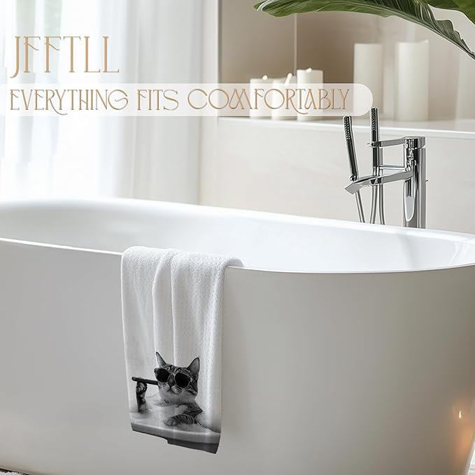 Funny Bath Cat Hand Towels for Bathroom Washroom Restroom Decor, Cat Mom Lady Lovers Gifts, Funny Bathroom Decor, 16x24 Inch