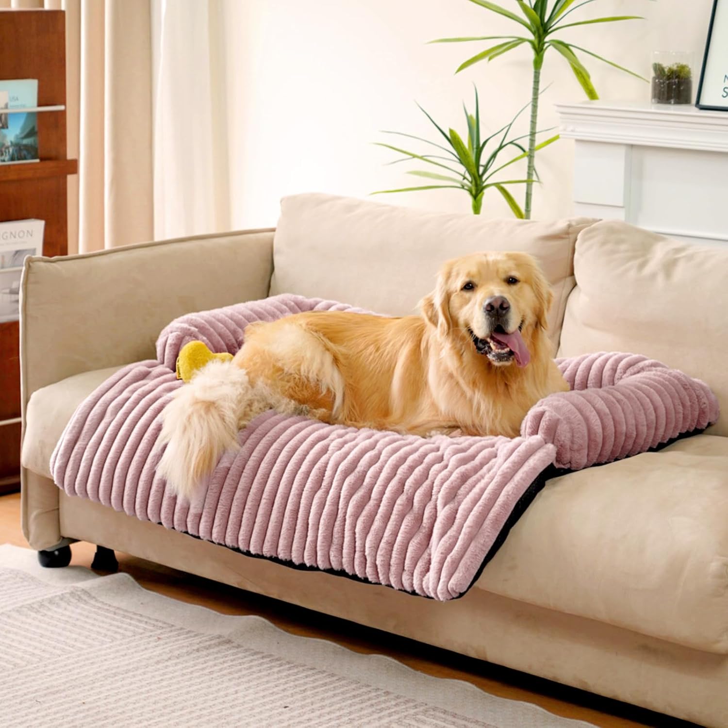 FUNNY FUZZY Pet Couch Cover for Sofa, Calming Dog Bed for Couch, Fluffy Plush Dog Couch Mat for Furniture Protector for Large Medium Small Pets, 47×37 in, Pink