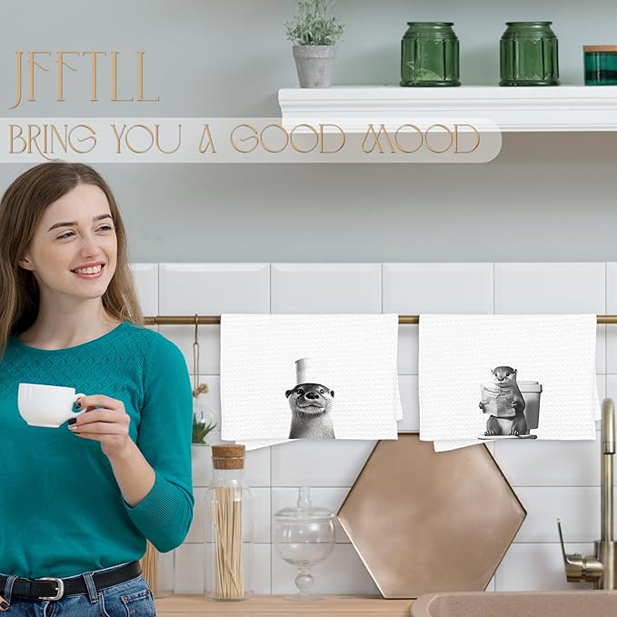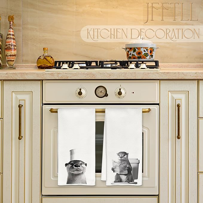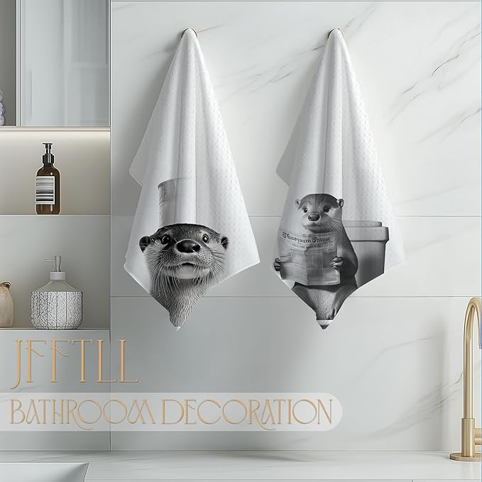 Funny Toilet Newspaper Otter Bathroom Hand Towels, Gifts for Women Men Otter Lovers Hand Towels for Bathroom Washroom Restroom Decor, 16x24 Inch Set of 2