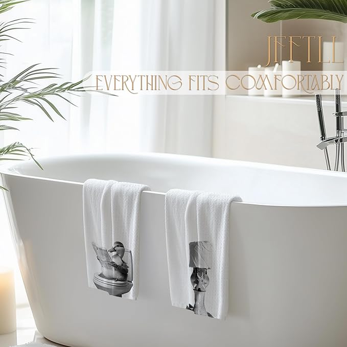 Funny Toilet Newspaper Duck Bathroom Hand Towels, Gifts for Duck Lovers Women Hand Towels for Bathroom Washroom Restroom Decor, 16x24 Inch Set of 2