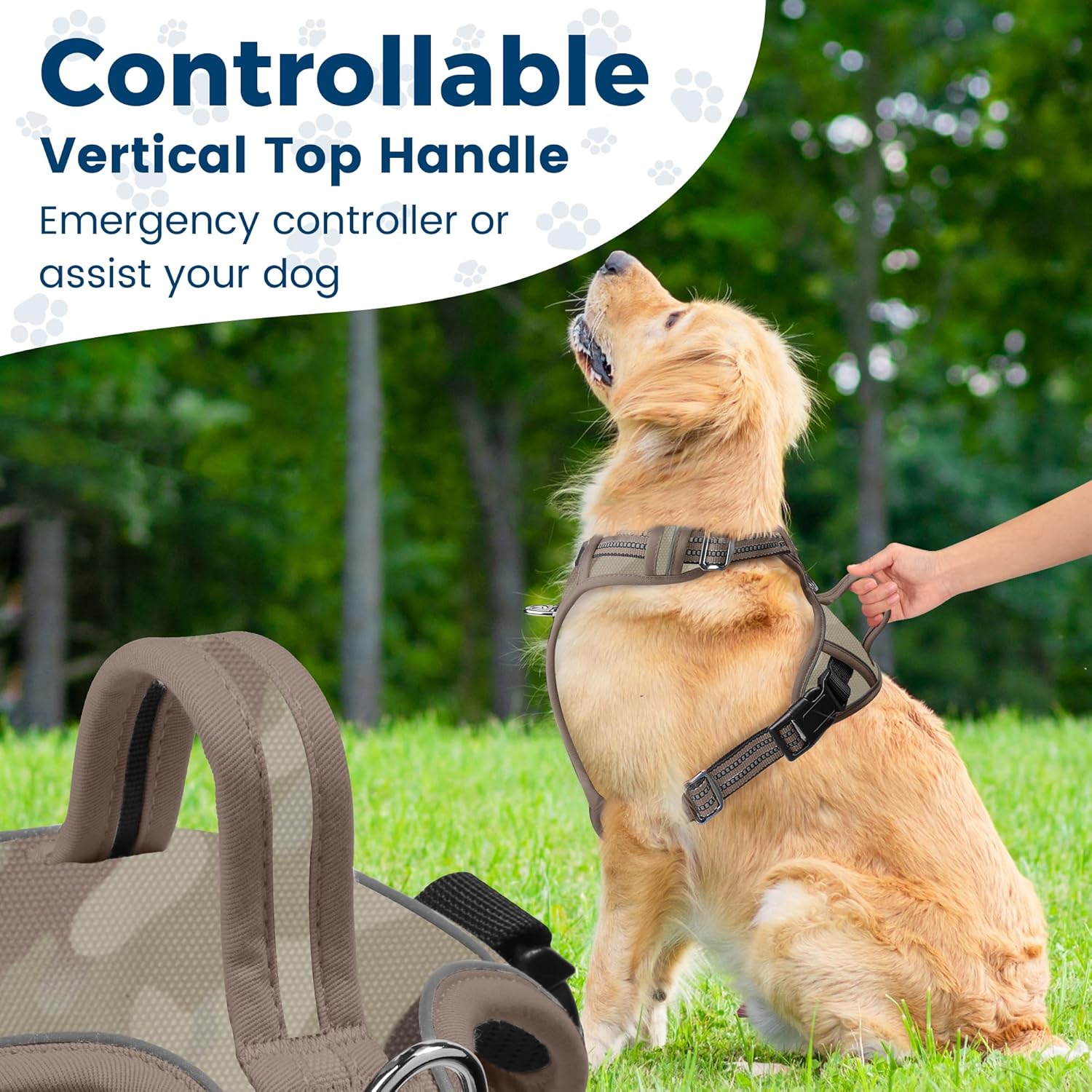 Funfox Dog Harness No Pull, Adjustable Pet Vest Harness, Super Soft Material with Vertical Handle Easy Control, Reflective Night Walking, 2 Leash Clips for Medium Sized Dogs, Camo Brown, M