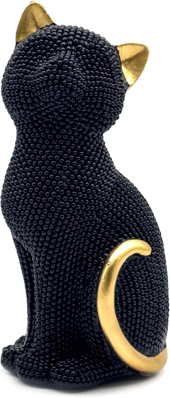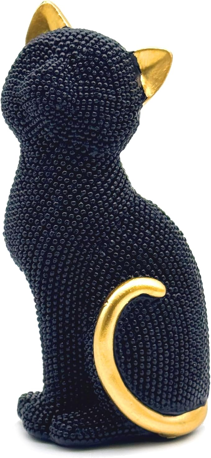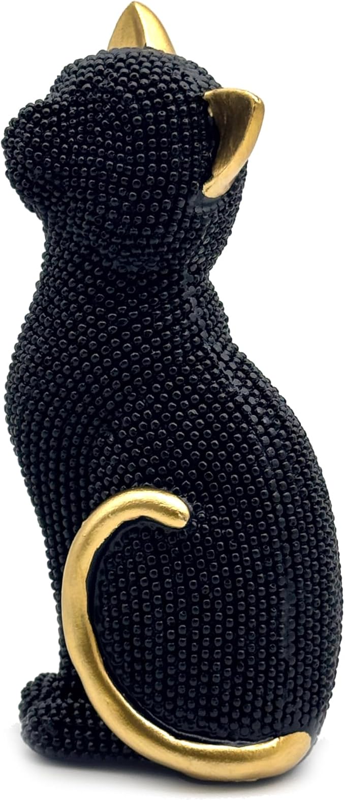 FUNSXBUG Decorative Cat Sitting Statue Art Figurines Sculpture Collectibles Home Office Desktop Decor Outdoor Garden Tabletop Display Decoration (Black)