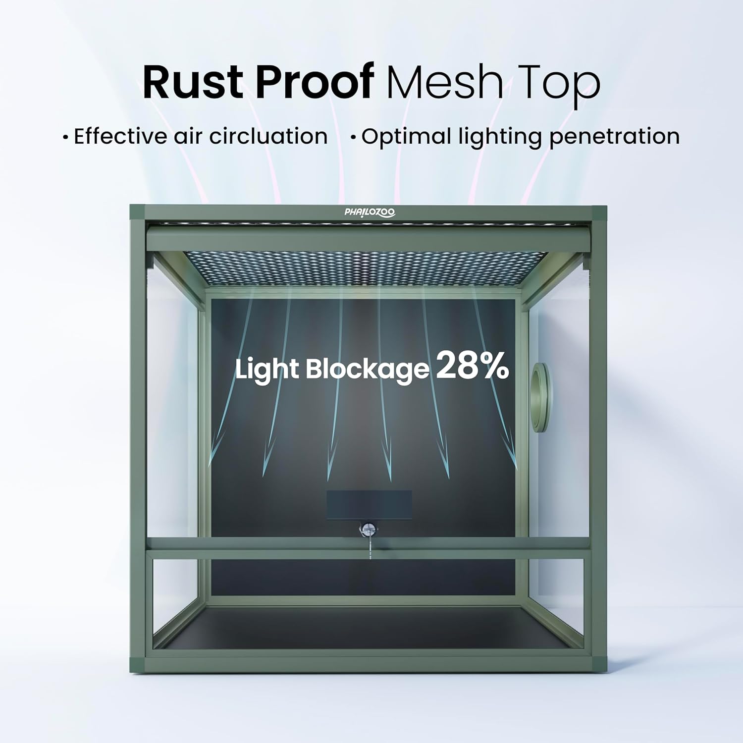 - 【Perfect for Beginners】Phailozoo 24-gallon reptile tank with single grommet measures 18'Lx18''Wx18''H. It only weighs 16.5 pounds. Easily assembled in six steps, perfect for first time reptile keepers.