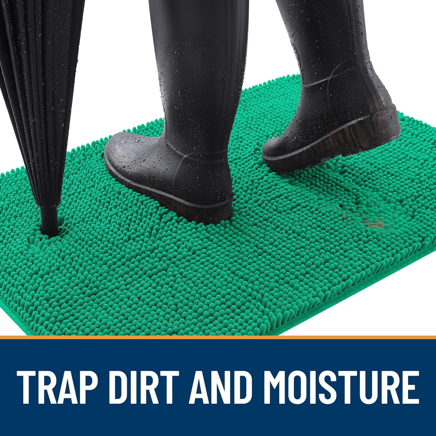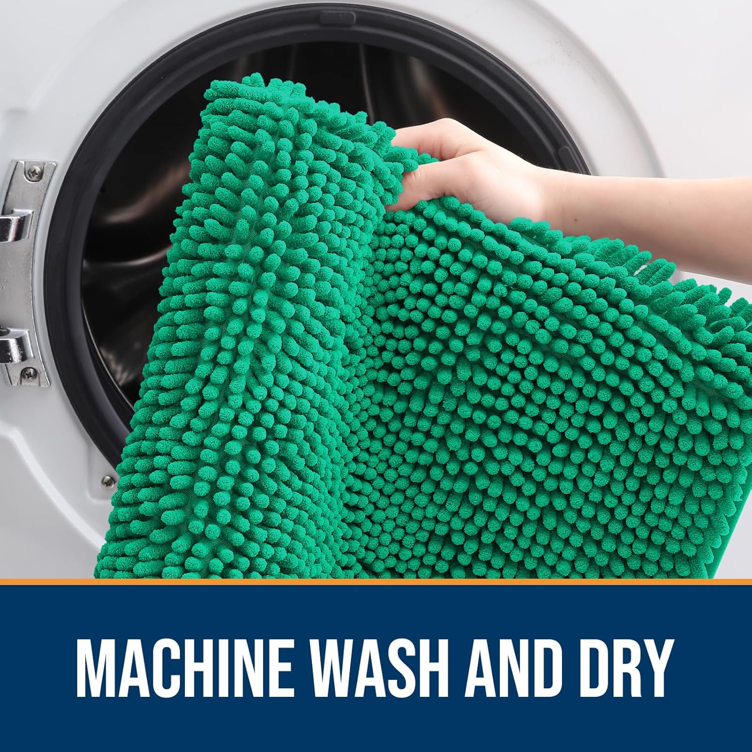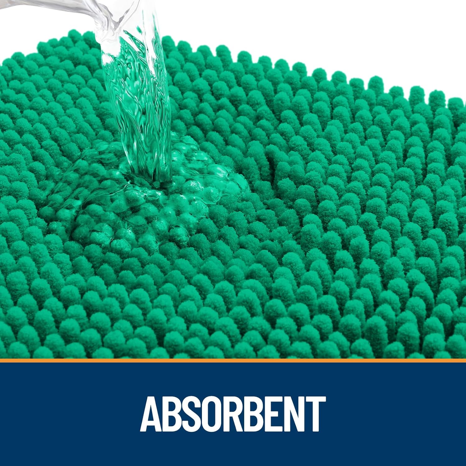 OLANLY Dog Door Mat for Muddy Paws 44x24, Absorbs Moisture and Dirt, Absorbent Non-Slip Washable Doormat, Quick Dry Chenille Mud Mat, Entry Indoor Entryway Carpet for Inside Floor, Emerald Green