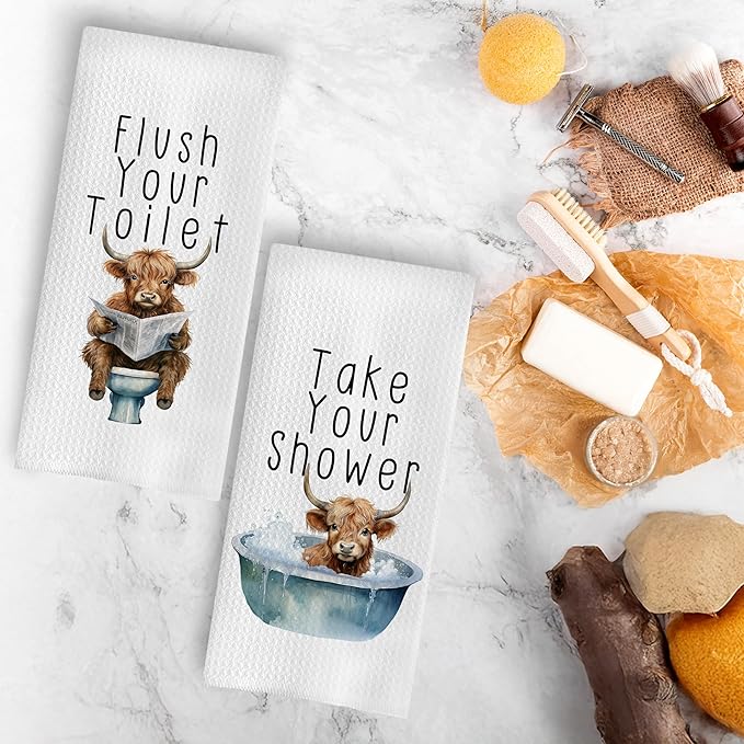 Funny Western Cow Bathroom Hand Towels Set of 4, Funny Western Cow Decorative Hand Towels for Bathroom Decor, 16x24 Inches