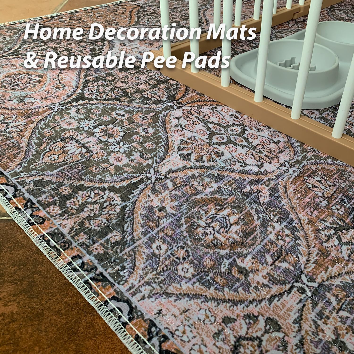nunubaby Washable Pee Pads for Dogs, Stylish, Non-Slip and Leak-Proof Pee Pads. Reusable Potty Pads for Dogs for Crates and Floors.(Brown/Multi, 18" x24")