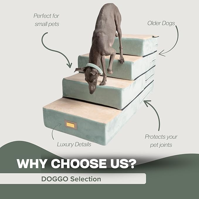 All-in-One Adjustable Dog Stairs – 5-Step Premium Pet Ramp for Small to Large Dogs – Sturdy, Non-Slip & Versatile for Beds, Sofas & More - Soft Cover, Modern Design (Green)