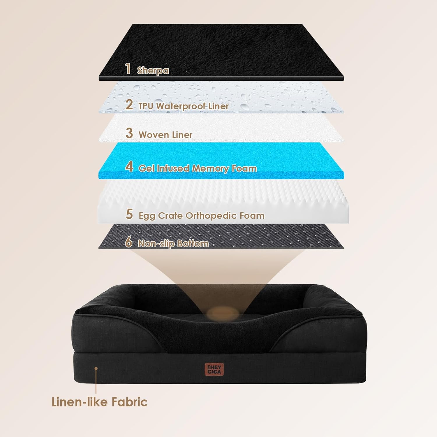 - WATERPROOF PROTECTION: A waterproof layer shields the plush fleece top from the sturdy base fabric, keeping the dog couch dry. Yet, the faux linen sides are not waterproof.
