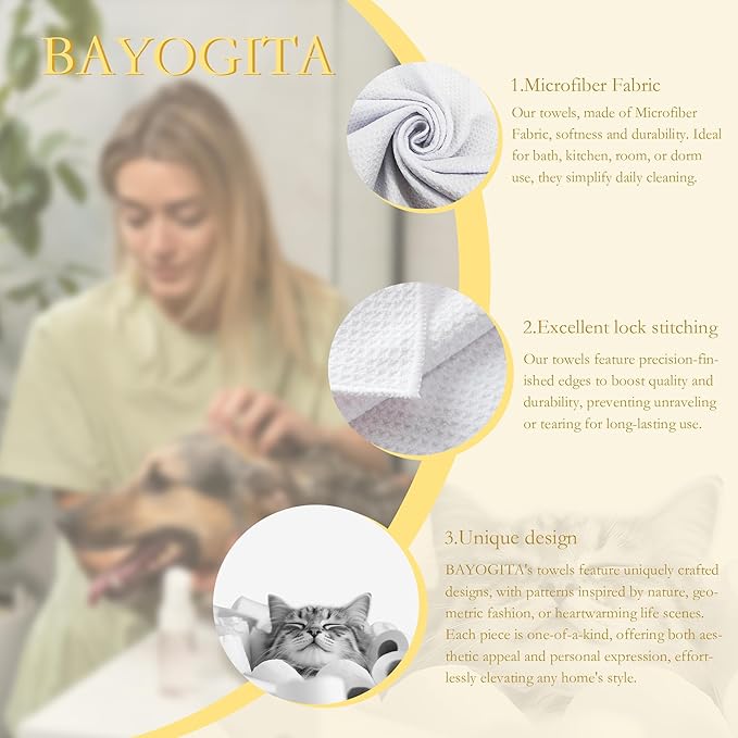 - 【Functional Elegance】BAYOGITA towels combine stylish aesthetics with practical utility. They add a touch of sophistication to your kitchen while efficiently managing spills and aiding in cleaning chores.