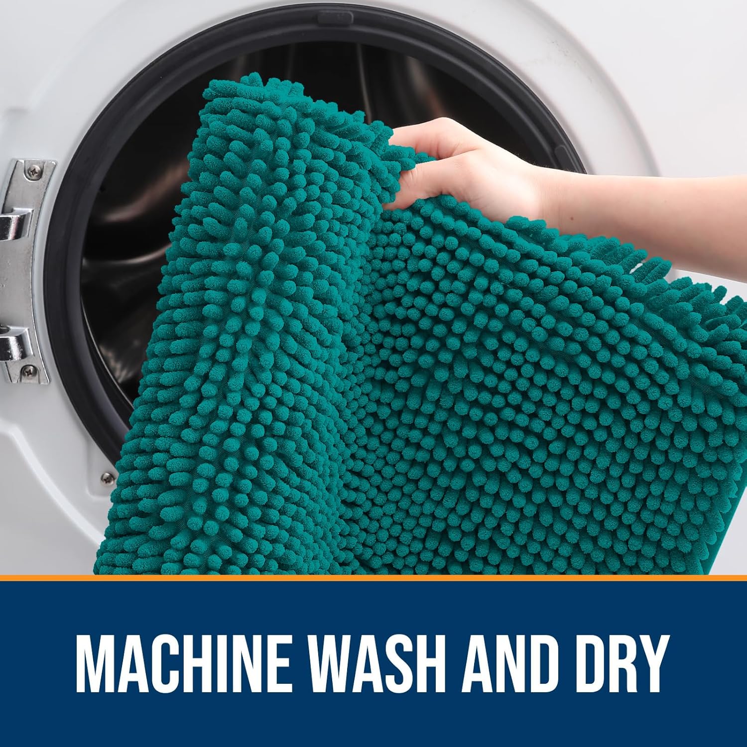 OLANLY Dog Door Mat for Muddy Paws 44x24, Absorbs Moisture and Dirt, Absorbent Non-Slip Washable Doormat, Quick Dry Chenille Mud Mat for Dogs, Entry Indoor Entryway Carpet for Inside Floor, Lake Blue