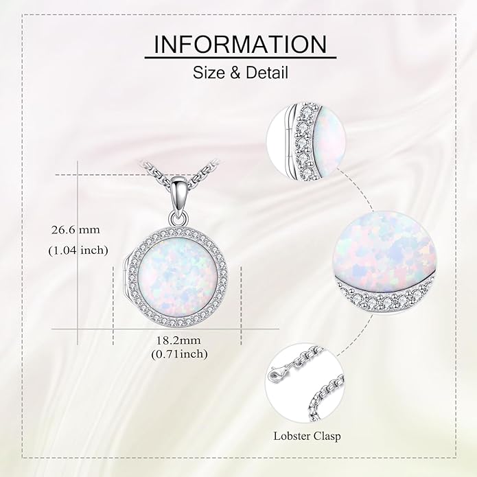 - šā„ Design:Opal locket necklace that holds pictures,925 sterling silver inlay with white created opal,shining cubic zirconia decorations around.Elegant and fashion women jewelry.