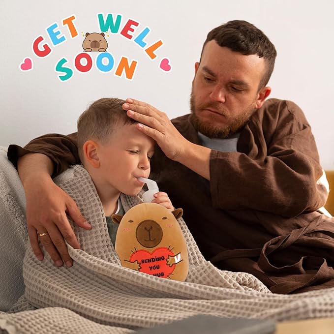 - Cute Capybara: This capybara pillow is composed of brown and red colors. Its pitiful expression conveys your tenderness for the person recovering. The hand wrapped in bandages holds a patched heart, on which is embroidered the phrase "sending you a hug" a unique design with a band-aid at the back.