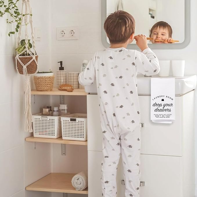 Drop Your Drawers Funny Laundry Hand Towels,Humorous Laundry Room Sign Decor Hand Towels for Bathroom, 16x24 Inch