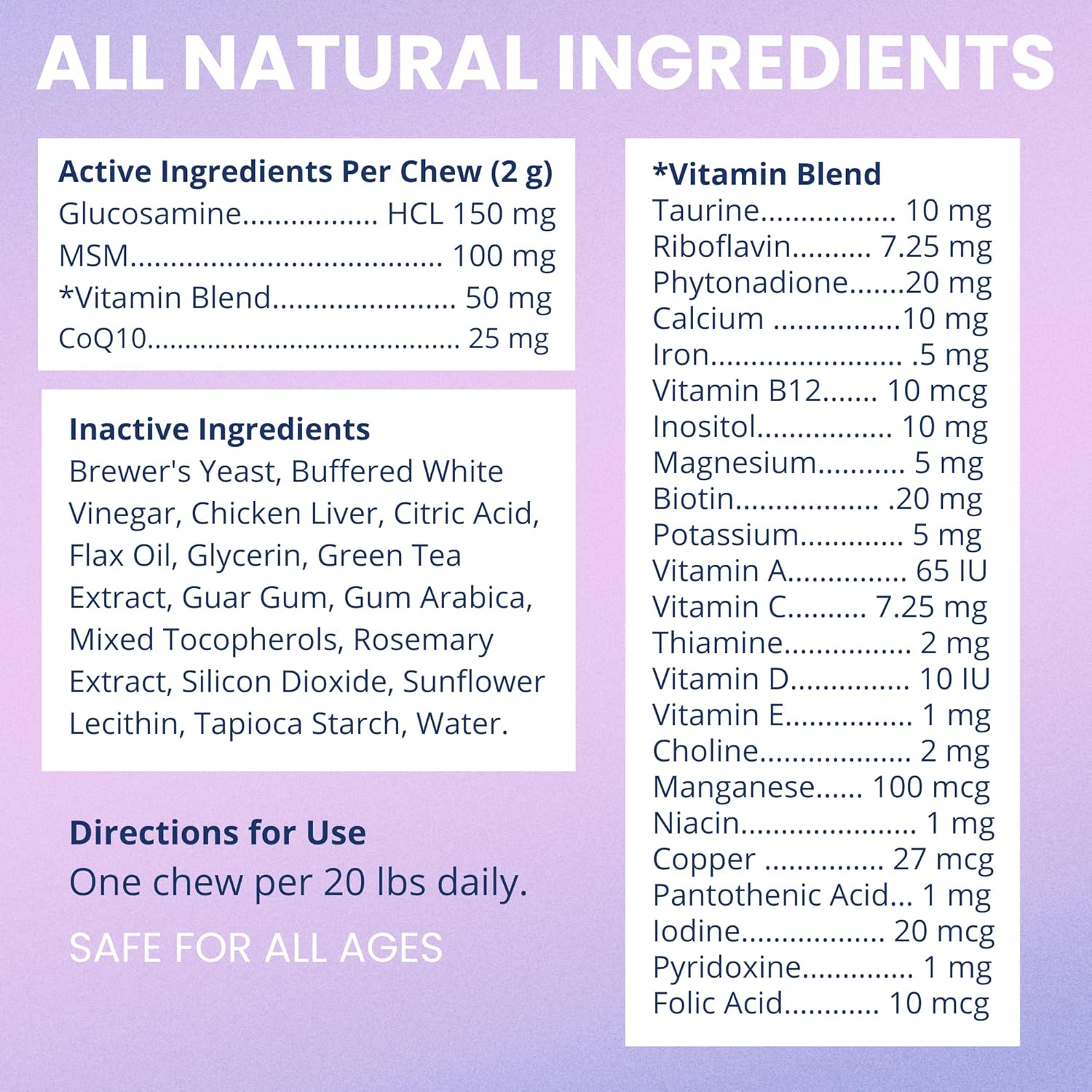 - Comprehensive Daily Health Support: Formulated by veterinarians, this dog multivitamin delivers daily support for immunity, skin, coat, joints, and heart health. With 26 essential nutrients, these chews are a reliable way to keep your pup energized, mobile, and thriving every day.