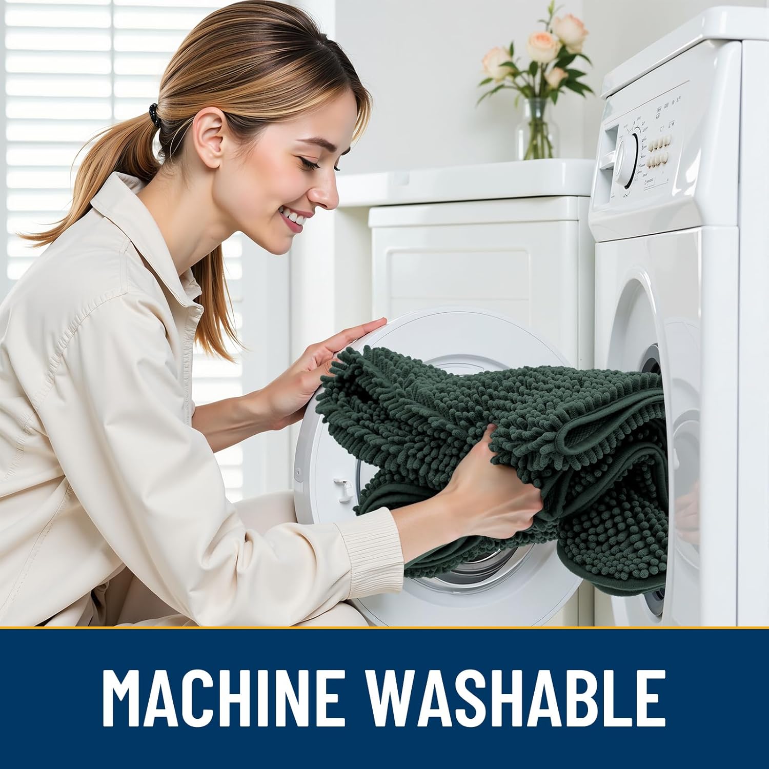 Smiry Dog Door Mat for Muddy Paws 30x20, Absorbs Moisture and Dirt Doormat, Non-Slip Washable Quick Dry Chenille Front Door Mat Indoor Entrance, Entryway Carpet for Inside Floor, Green