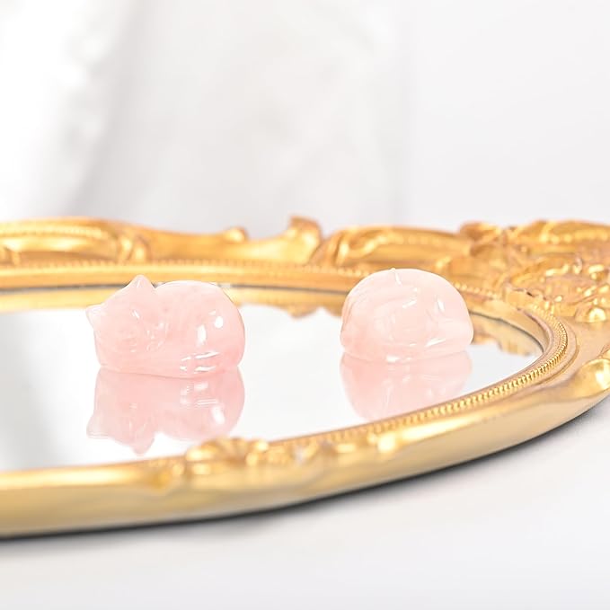 WHAL&YUNE Crystal Cat Figurine, 1PC Rose Quartz Cat Stone, Natural Sleeping Cat Ornament Hand Carved Cat Statue Cat Decoration for Cat Lovers, Gift 1.5"