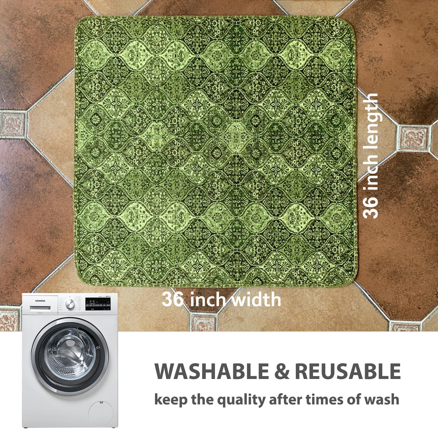 nunubaby Washable Pee Pads for Dogs, Stylish, Non-Slip and Leak-Proof Pee Pads. Reusable Potty Pads for Dogs for Crates and Floors.(Green/Multi, 36" x36")