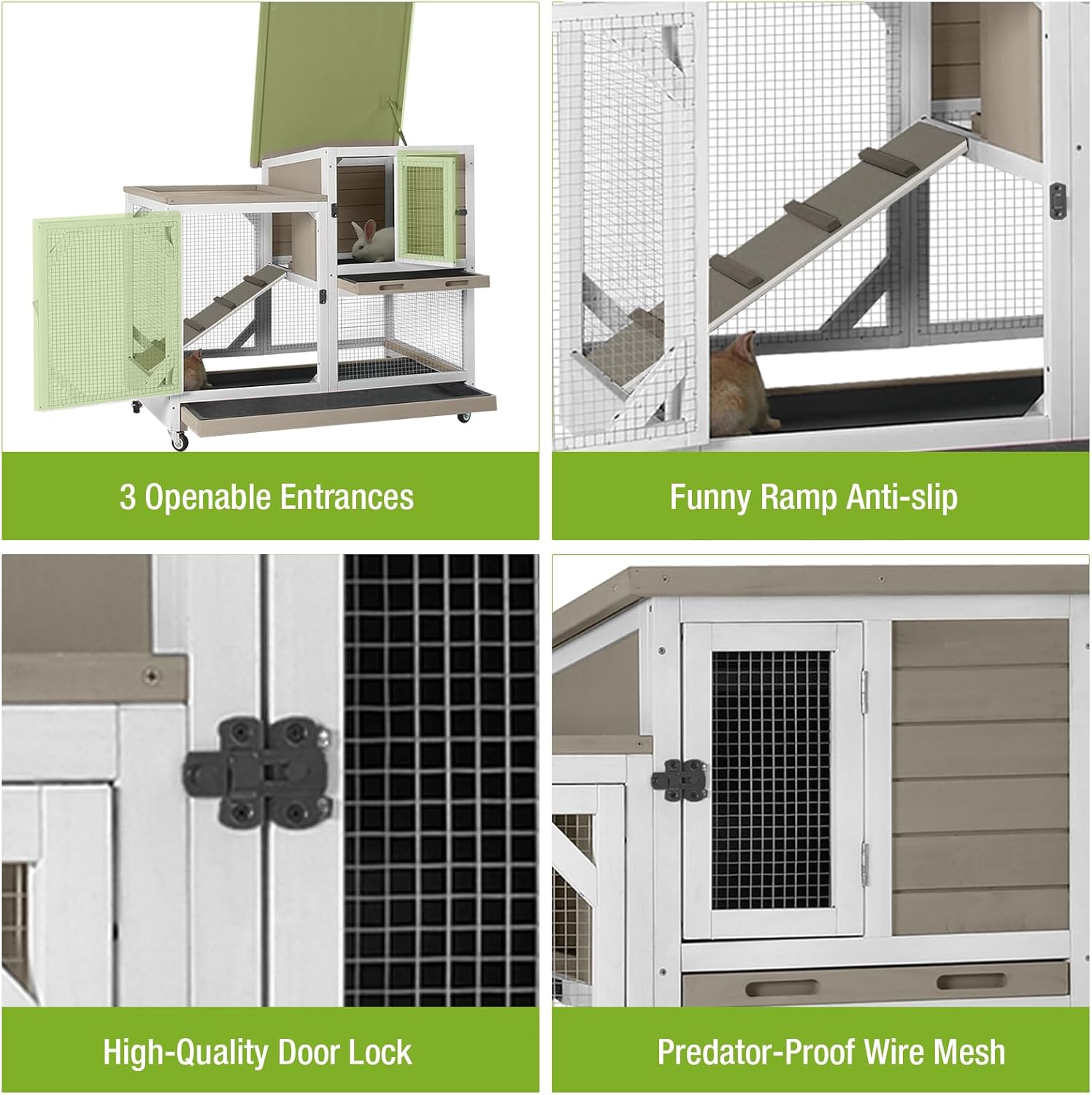 - Roomy & Safe Living Space: Gives plenty of space for pets to move and rest. Raised design helps deter predators while letting air flow and letting you check on pets easily.