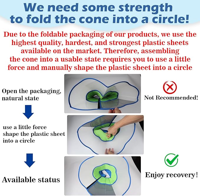 - 【Purchase Notes】---1.Please make sure to check our size chart before making a purchase 2.As it is a folded product, it is prone to deformation during transportation. Please restore the plastic sheet to its original shape by hand after assembling the cone!If you have any questions about size or quality, please contact us as soon as possible instead of choosing to return or refund, as it will waste and miss the best treatment time for your dog! (We have a 7*24-hour fast response service! )