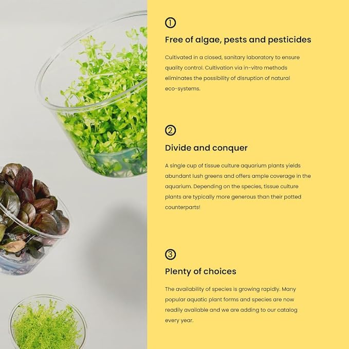 - Delivered as lab-grown tissue culture—100% pest-free and cultivated in sterile conditions to support clean, controlled aquascaping environments.