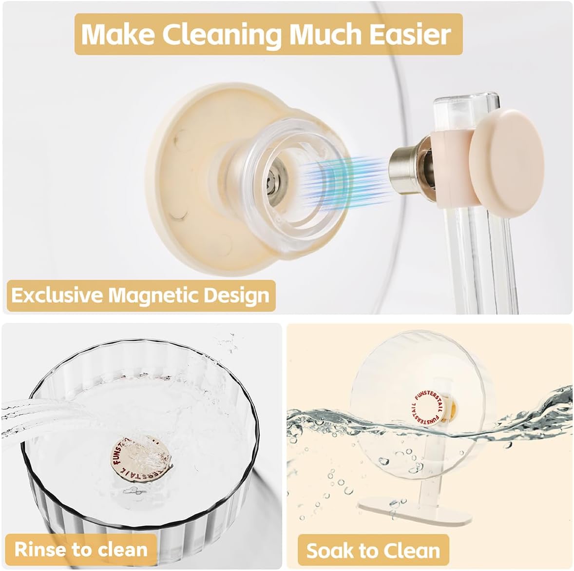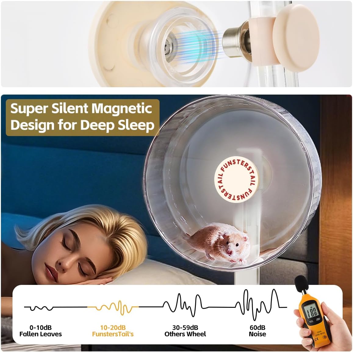 Super Silent Hamster Wheel 10.4 Inch, Magnetic Large Rat Wheel for Chinchilla, Gerbil, Guinea Pig, Cat, Mouse, Sugar Glider and Dwarf, Syrian Hamster Accessories (Cream White)