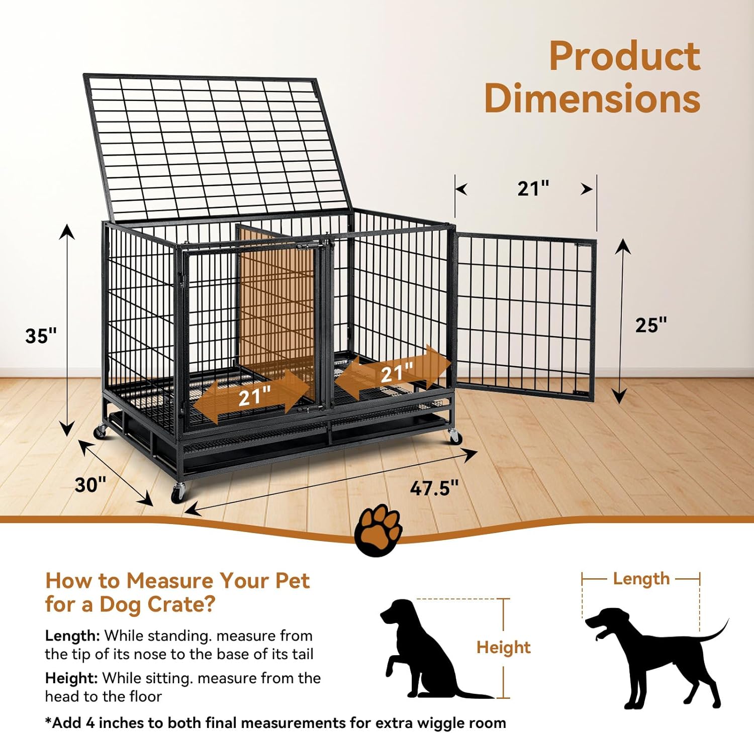 - Heavy Duty Construction:Our heavy duty dog crate is made of all metal frame with rust-resistant finish. Reinforced wire will not be deformed by pet bites or collisions. Give your pet a safe and comfortable home.