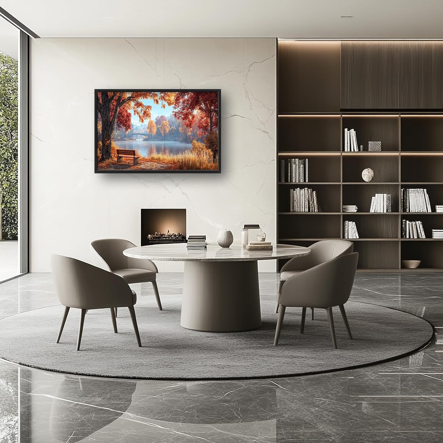 Large Autumn Tree Wall Art for Living Room, Framed Oversized Lake Landscape Wall Decor Nature Canvas Painting Modern Artwork for Living Room Bathroom Bedroom Office Dining Room 36"x24"