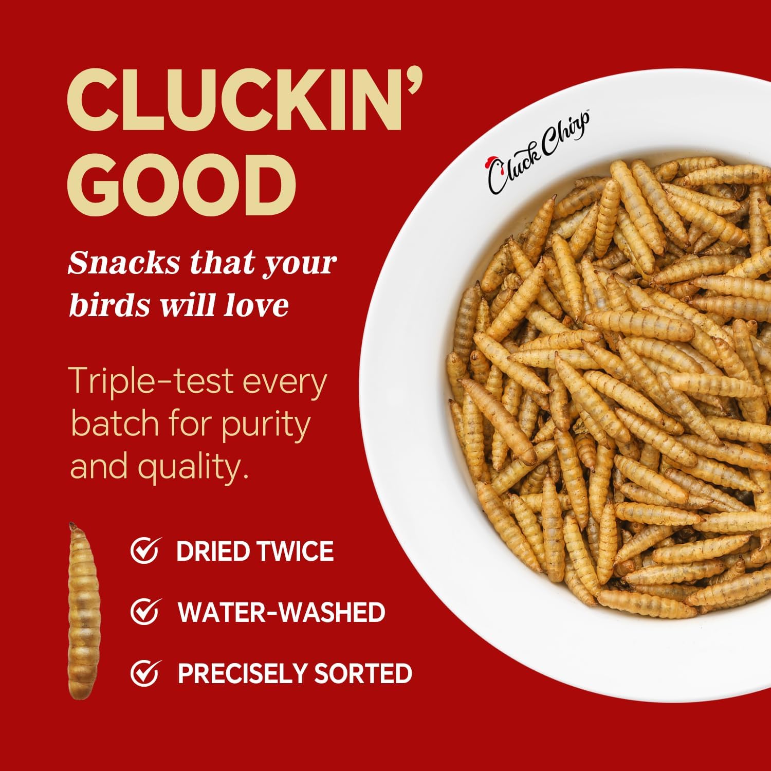- FARM-FRESH & FLOCK-APPROVED: Our sturdy, shelf-stable box and resealable inner bag keep your BSFL fresh, clean, and easy to serve—with every scoop delivering reliable quality you and your flock can count on. Backed by Cluck Chirp’s promise of premium nutrition and happy birds