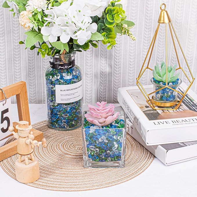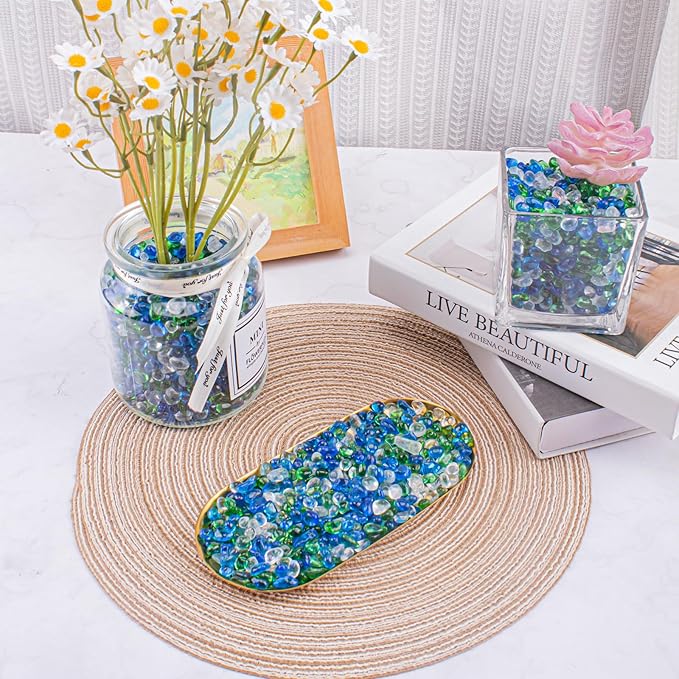 - Features: The glass gemstone is like river gravels, no dye or other methods of artificial coloring is used, never faded. Smooth edges no harm to animals and plants, you can rest assured that using. NB the glass pebbles are 0.93LB Heavy Enough BUT SMALL BAG