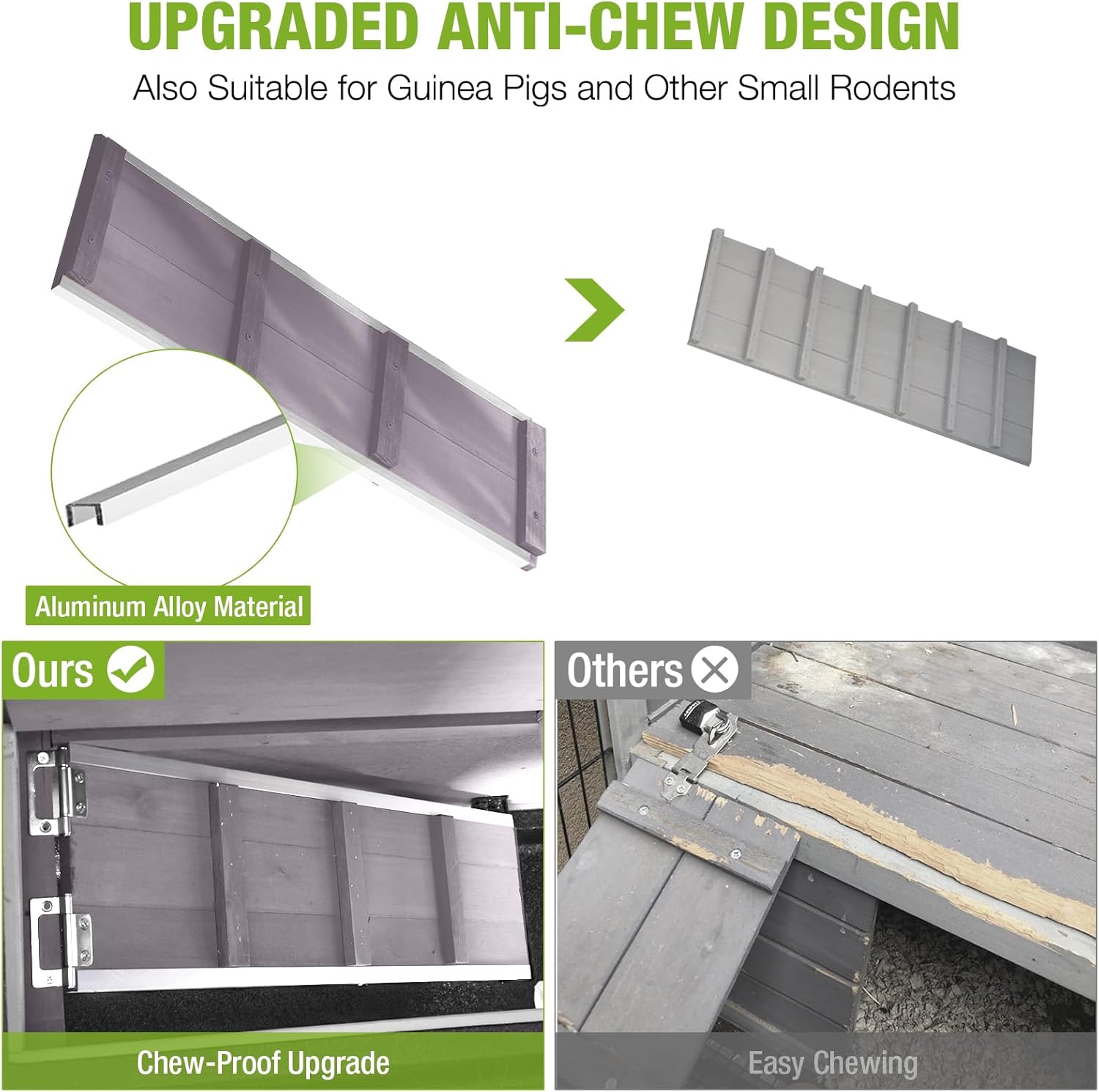 - Reinforced Chew-Proof Design: The access ramp features aluminum alloy-reinforced edges to discourage chewing by rabbits and other small pets, enhancing the rabbit hutchβs long-term durability. This sturdy design protects against wear and tear, ensuring lasting use.