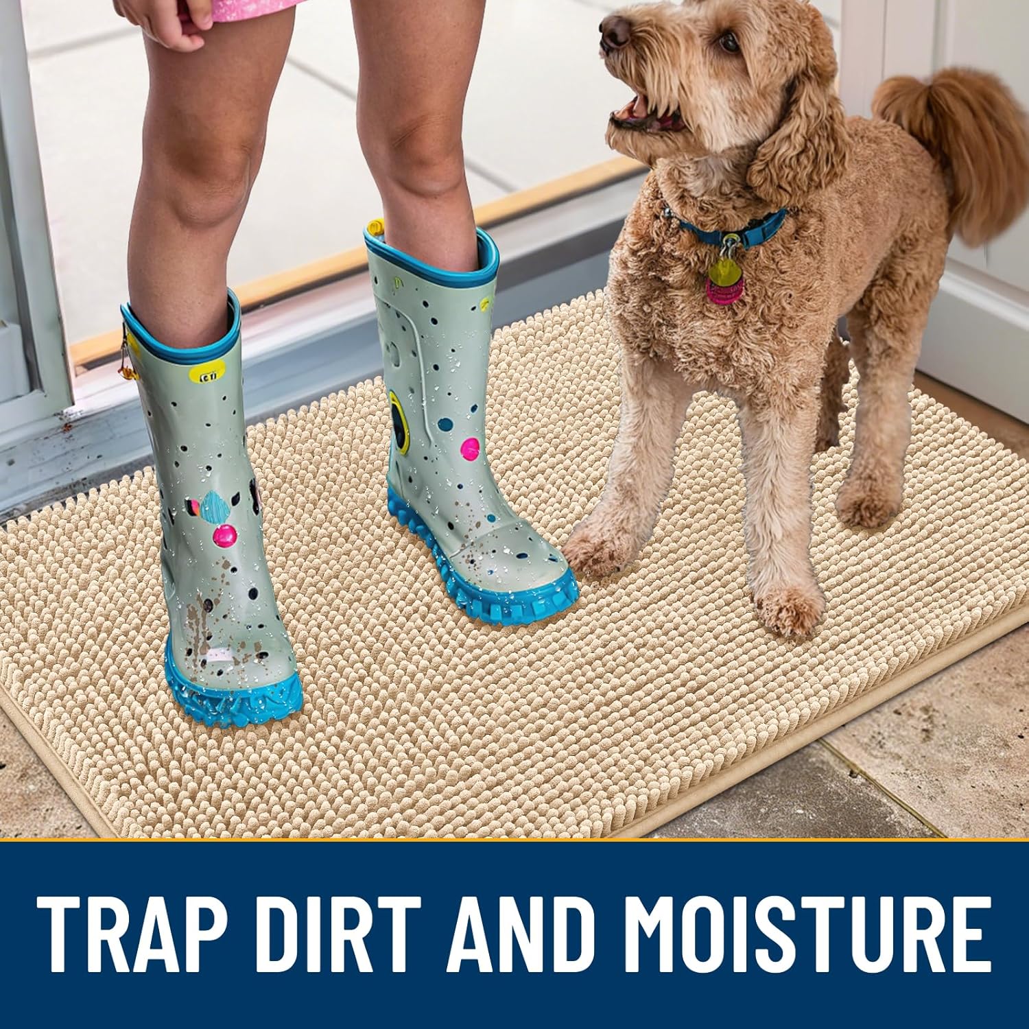 Smiry Dog Door Mat for Muddy Paws 34x21, Absorbs Moisture and Dirt Doormat, Non-Slip Washable Quick Dry Chenille Front Door Mat Indoor Entrance, Entryway Carpet for Inside Floor, Beige
