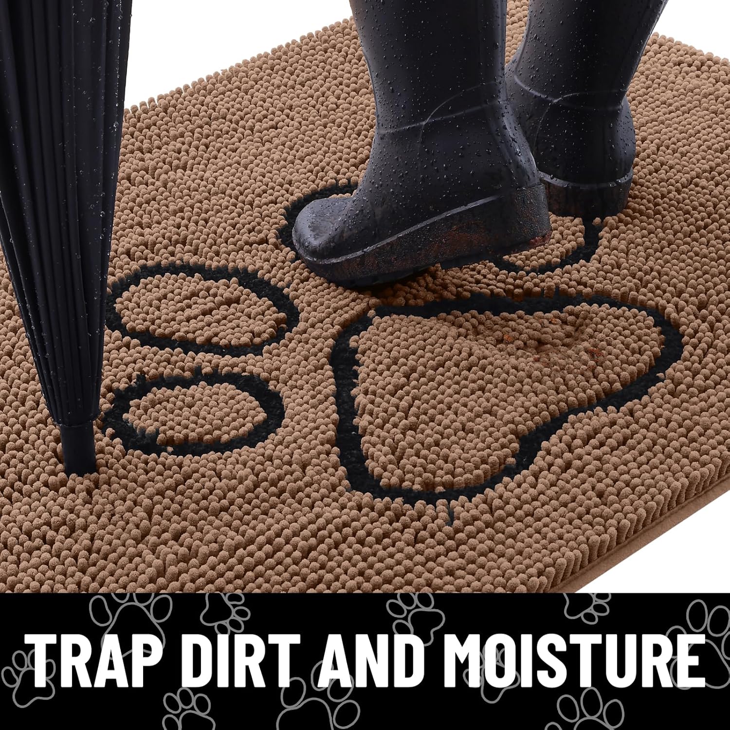 Smiry Dog Door Mat for Muddy Paws, Absorbent Dirt Trapper Non Slip Quick Dry Washable Chenille Mat for Mud Dogs, Entry Rug for Indoor and Outdoor (30x20 Inches, Coffee)